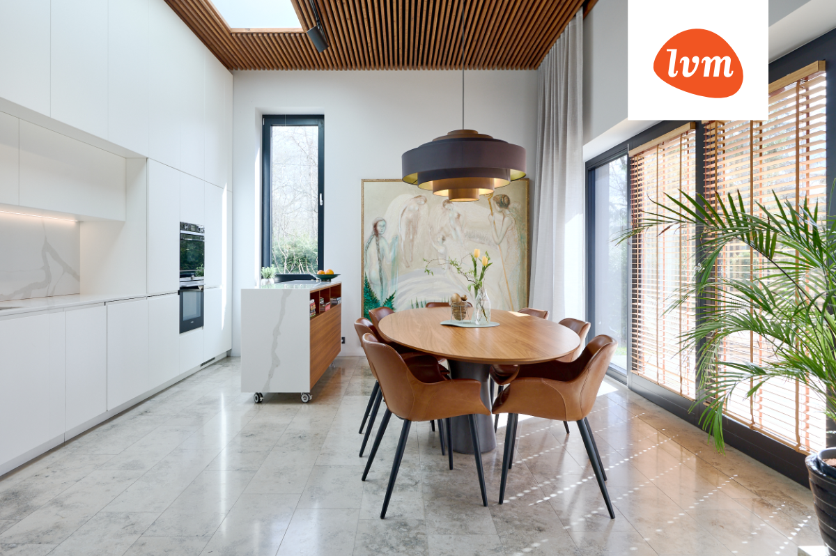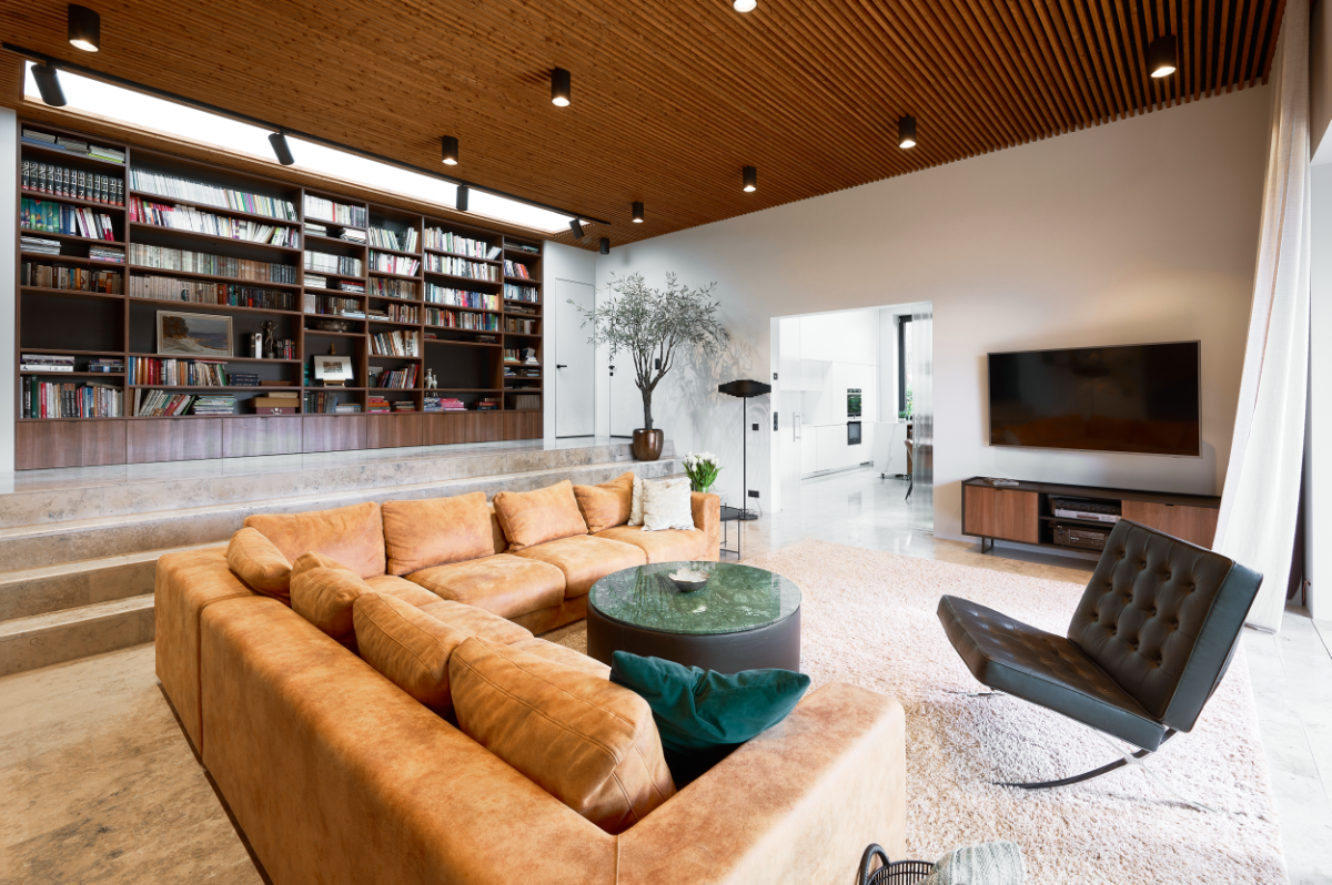Hoone esimesel korrusel asub suurepäraselt helge köök-söögituba, mis ühendatud avara elutoaga. Elutoa keskmes on mõnus diivaninurk ning selle kõrgemas tasapinnas asub maast laeni raamaturiiul, mis loob ruumi nooblit elegantsi ning kuhu mahub rohkelt raamatuid ja muid eksponeerimist väärivaid esemeid. Muljetavaldava elutoa laekõrgus on peaaegu 4 meetrit.