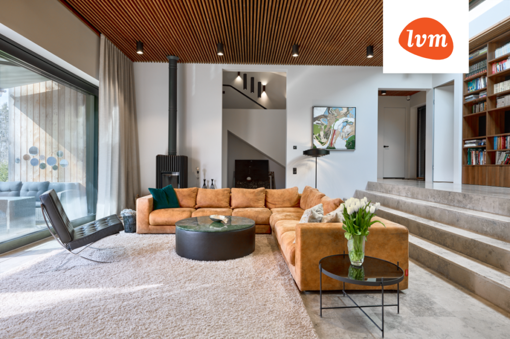 Siseviimistluses on kasutatud naturaalseid toone ja väga kvaliteetseid ning ajatuid materjale. Põrandaid katab kõrgkvaliteetne looduslik Saksa paekivi Jura Grey. Põrnadal olevat looduskivi tasakaalustab põnevalt lakke paigutatud Yakisugi puitribi.