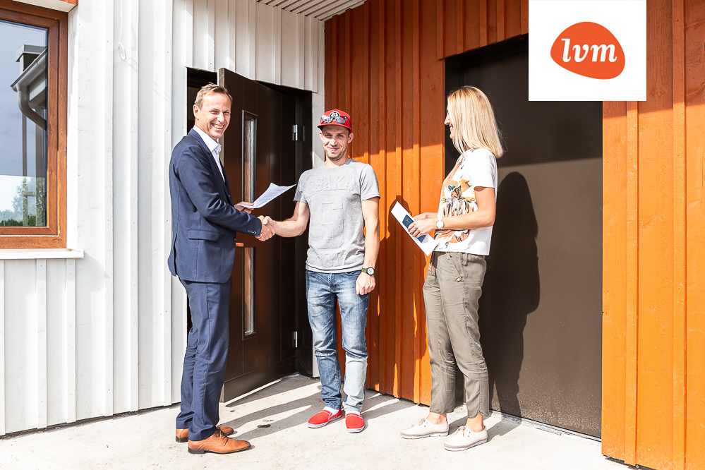 Pildil Metsaveere elamurajooni esimese ridaelamu ehitaja, esimesed uued omanikud ja arendaja.