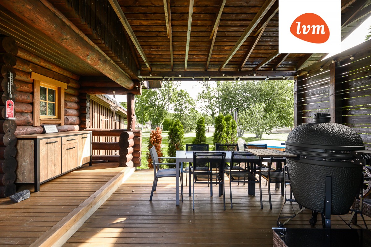 Peamajast leiab neli magamistuba, elutoa ja avatud planeeringuga köögi. Saunamajas on puuküttega saun, avar pesuruum ja teise korruse magamisasemed. Saunamajal on omakorda suur katusega terrass.